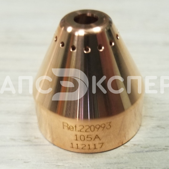 Защитный экран 220993 для механизированной плазменной резки — специализированный компонент для плазмотронов Powermax 105, обеспечивающий подачу вторичного защитного газа и направление плазменной дуги. Изготовлен из термостойкого материала, устойчивого к деформации при рабочих токах до 105А.